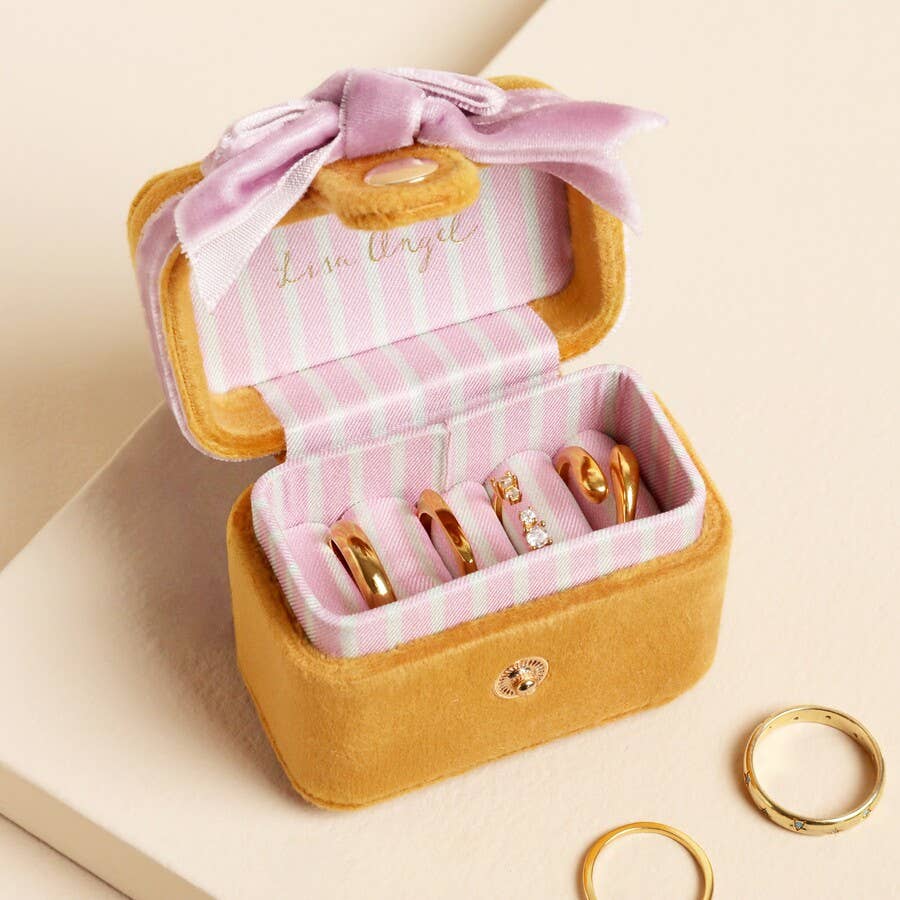 Mustard and Pink Velvet Bow Travel Ring Box